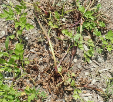 蕾がうなだれる。茎を抱くように葉がつく。そして茎の中が空洞になっている。花言葉は「追想の愛」だが、「どんな貧乏な家にも生える」から貧乏草の別名がある。4月から7月頃まで咲く。重なるように6月~10月には姫女苑が咲き出すので上記の逆の写真を掲載したい。花弁は細く糸の様な形に対し、幅が広く輪郭がくっきりしている。 |