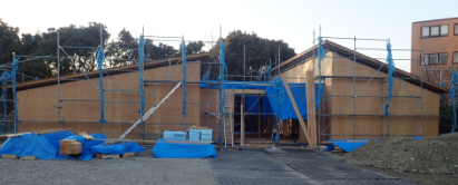 | バス停前に整形外科医院が今夏開院 国際村調整池のバス停前にこの夏整形外科医院が開業する。オープニングスタッフを募集している。お洒落な建物で湘南国際村に似合いそうだ。大工にとっては大仕事だろう。 |