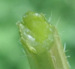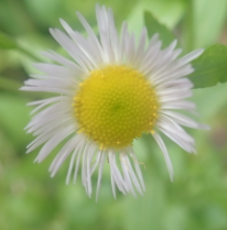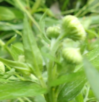 蕾がうなだれない。葉は茎に真っ直ぐに付ける。そして茎の中に白いものが詰まっている。花言葉は「素朴で清楚」だ。時期は6月~10月だがハルジオンの中に咲いていた。普通は夏だが、陽気か。花弁はハルジオンに比し、幅が広く輪郭がくっきりしている。 |