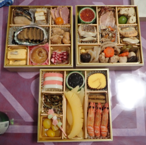 | 令和3(2021)年1月1日 毎年、お節を食べ比べしながら過ごすようになって随分経つ。今年はローソンの「プレミアム和風三段重」を甥っ子が用意してくれた。写真では伝わり難いが、各地の有名素材が豪華に美味しく味付けされた車海老・数の子・黒毛和牛・黒鮑などが29品。どれも一級の料理に仕上がり。久しぶりの会話を楽しみながら正月を過ごせた。コロナ過でも来てくれて、何気ない日常があり嬉しい新年の幕開け。下は畑の人参と大根で弟が料理した「にんじんしりしり」と「きんぴら」で旨い。流石に料理人だ。2人で2日で2升位飲んだ。 |