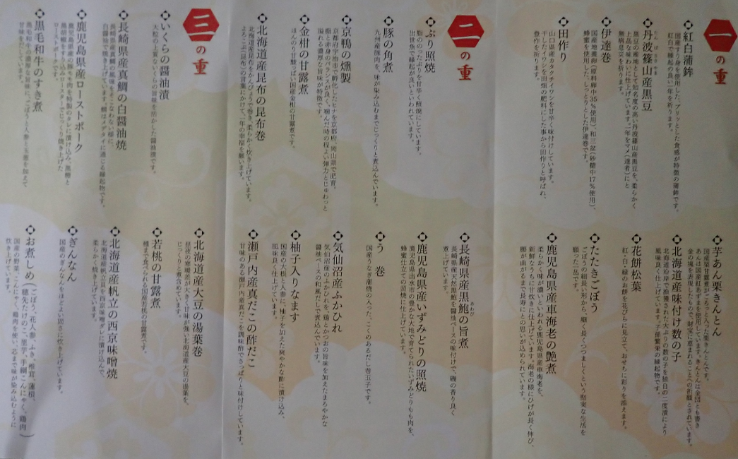 | 三段重のお品書き |