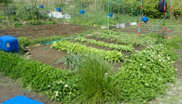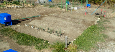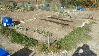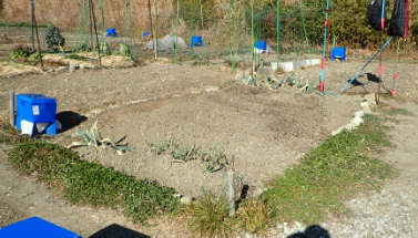| 2021年2月3日 立春の畑 ジャガイモ(メークイン1kg、男爵4個、キタアカリ2個)を一部2分割して植える。ニンニクを一部植替え。セリの根を西と南がエアの脇に植える。水を8㍑。 カブの芽が出始めてきた。 |