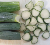 右が畑の下仁田ネギ、 左が八百屋で売っていた4本100円の下仁田ネギ。 吾畑も負けてない。そこそこだと安心した。7ヶ月で30本できたから何なんだと言われそうだけど、満足している。1周年記念の収穫だ。来月から2年目の畑が始まる。 |
