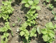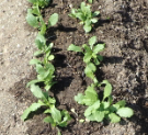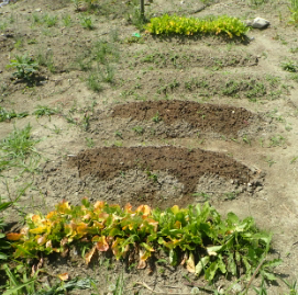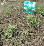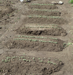 ジャガイモが芽をだした。カブの間引き後。 |