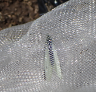 大根とクローバが共存、網から出られないチョウチョ |