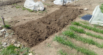| 20210131の畑、ジャガイモの畝を作る。 、 |