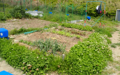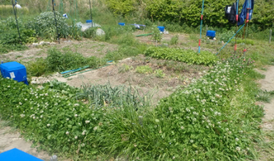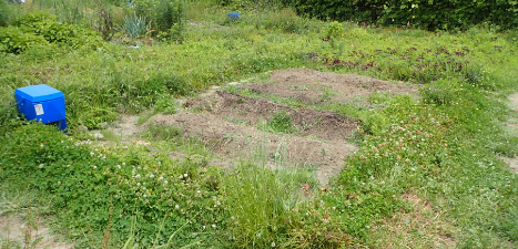 | 畑のクローバの繁殖が目立つ。内側をごっそり抜いた。 |