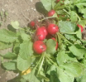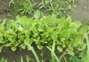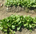 下から、辛味・ラディシュ・赤丸二十日・彩りはつか2畝・葉大根 右は青シソを加えた6種の混合を自然農法 |