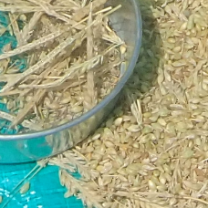 | 麦ご飯 畑で取れた麦を手で脱穀して炊いたのを、頂いた。おにぎり2個にして、焼き海苔を蒔いておいしく食した。久しぶりの麦ご飯は美味かった。以前に食べたのは麦とろご飯で、握り飯で食べたのは初めてだ。麦の甘みが口中にひろがり麦畑を想像しながら食した。 カラスのいる麦畑は爽やかな夏日であった。 |