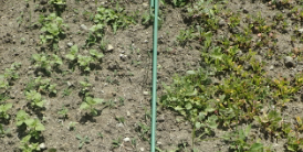 畑5月10日 左は日除け雨除けのテントの支柱。昨年の2月にYMさんに建てて貰った。仕事での余った鉄筋で雨や強風に耐えてくれた。ここにバッグや上着を掛けて、重宝している。下の写真は、現在の畑の状況で水や肥料不足が明らかな状況だが、元々自然農法に近い状況を想定していたので納得している。連作障害や間引き・土寄せ・植替え・葉落としなど日々に世話が実りに如実に現れる。 |
