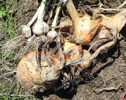 カブの収穫と玉ネギの枝分れ |