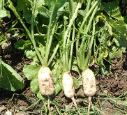 右からカブA、カブB、葉大根 |