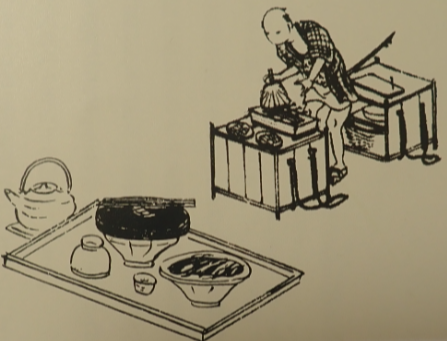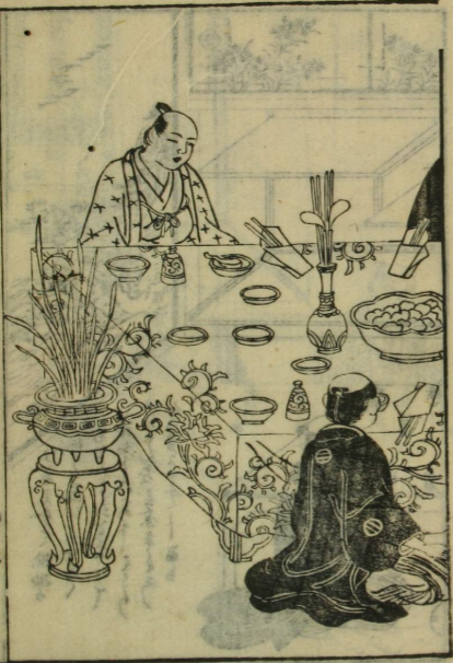 この絵の普茶料理で卓の真ん中に箸立て(箸筒)がある。『普茶料理抄』も箸立て(箸筒)に見えるが、 こちらは人物が特定されているようだが、箸立て(箸筒)の見解がない。