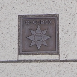 「よこすかポートマーケット」の前の 歩道にある。記念の1枚。