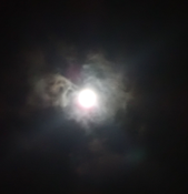 中秋の名月で満月 自宅ベランダから少し雲がかかる |