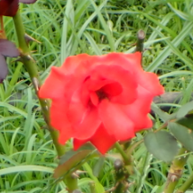 オリンピックファイヤー1992独 30年前に作出されたバラ ヴェルニー公園で咲き始めた |
