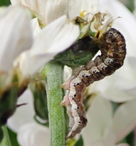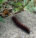 ツマグロヒョウモンチョウの幼虫 スミレの葉が食餌 |