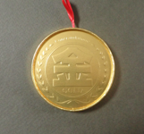 | 10月28日(木) 晴れ 趣味の会の会長から写真の金メダルを頂いた。会長の住む隣町の大府市は金メダルの町として有名だ。レスリングの至学館大学があり、毎回金メダル獲得に貢献していることで期間限定の金メダルティッシュが販売されているとのこと。わざわざそれを購入して送付いただいた。直径12センチだが、いくつになっても嬉しい。 会報の原稿はなかなか集まらないようで多少とも貢献したいので今後はせっせと投稿することにする。 |