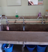 三浦市役所 第2分館のトイレ手洗場 昔の中学校のまま (今は廃校) |