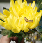 今年は2匹目だ。 仏花の菊に虫がいた。 生花の防疫体制が今年は甘い。 |