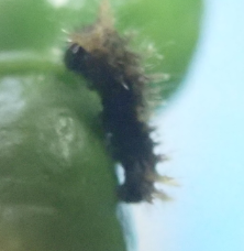 | 今年は30個の花(蕾)を確認、一昨年の1個からここまで来た。とにかく幼虫退治に尽きる。 | モンキアゲハの幼虫を自然に返して観察。2日で26㎜まで成長した。 | コクチナシの花に付いていた。豆粒のような黒光りした昆虫。正体不明。 | |