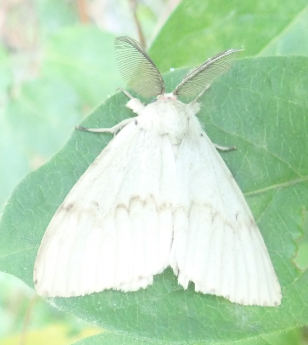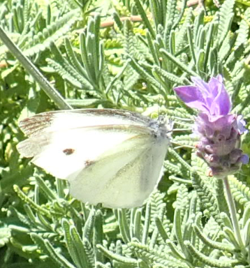 | モンシロチョウが2個体遊んでいるというかじゃれていた。交尾ではないように見えた。 | 前回は頭からだったが、今回は同じフリンジラベンダーの蜜を吸っている横向き。 | 横須賀美術館前のバス停脇の茂みにいた。真っ白な20㎜位の蛾。シャクガの仲間か。 | |