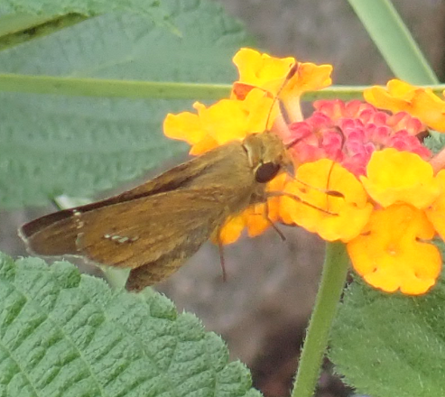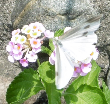 | クヌギの樹液を吸っていた。街中のウエルシティ公園だが昆虫のたまり場だ。 ヤマかサトか違いが判った気になっているが、模様は? | 爆蘭(線香花火の連想から)、三時草ともいう。近所の道端に咲いている。接写だと可憐である。 | 中央のYデッキにいた。夢中で吸蜜していた。なんか小ぶりな気がする。ランタナはクマツヅラ科で和名は七変化。 | |