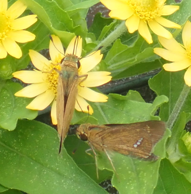| 2018年8月12日 イチモンジセセリ(セセリチョウ科) | 2018年8月12日 メランポジウム(キク科) | 2018年8月11日 アカホシゴマダラとカナブン | |