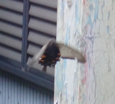 | 自宅の庭に飛翔していたが止まらないとこの程度の腕。 | 池の谷戸の側溝にいた。 | ウエルシティのファミマ前の壁にいた。 | |