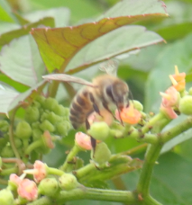 | コクチナシの葉にいた。どうみても幼虫みたいな気もするが。 | 今年初めての一輪。ベランダから撮った。ピンクと白の二本ある。 | 市役所前公園でヤブカラシの吸蜜活動中。 | |