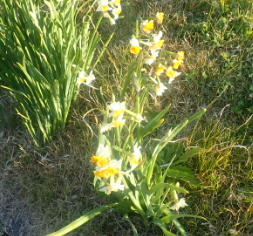 池ノ谷戸のバス停脇。この時期は水仙が多い。日陰でも結構咲いているが、この日当たりなら早い。 |