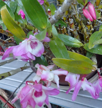 | 今の時期、庭には、この3種と下のスズラン・カトレアと蘭の花盛りだ。ヤブラン・オリヅルランは半年先になる。 |