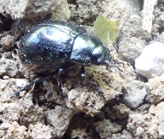 コガタルリハムシ成虫越冬(12/1,畑) 右の触角が取れている |