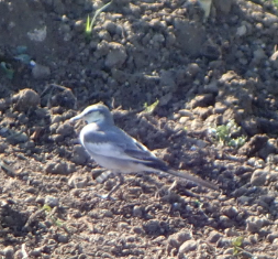 ハクセキレイ( 2021/1/13、畑) 最近は逃げずにポーズする |
