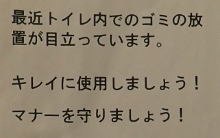 余分なティッシュもないので便器も拭けない。しかたなく中腰で済ませた。初めてじゃないので出来たが、慣れない人は困る。
